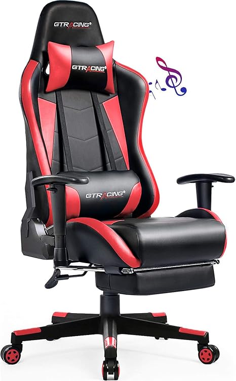 Amazon Com Gtracing Gaming Chair With Footrest Massage Bluetooth Speakers Ergonomic High Back Music Video Game Chair Heavy Duty Computer Office Desk Chair Red Kitchen Dining
